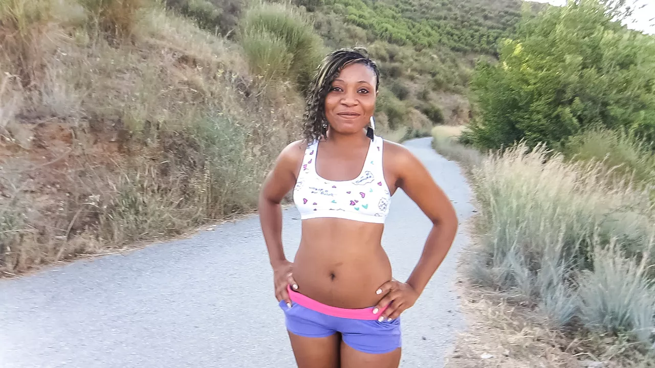 Beautiful ebony jogger paid for public sex