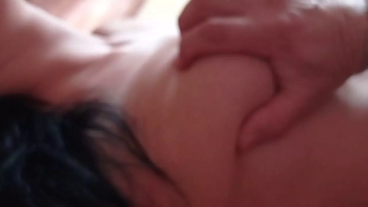 I caress my wife's breasts.
