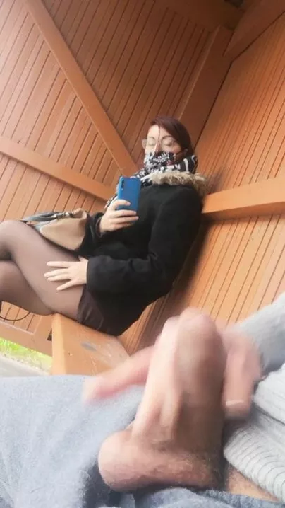 This student is waiting for her bus, I pull out my cock
